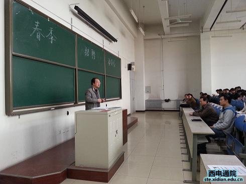 月11日下午4点,金沙娱乐城 2013年春季招聘动员会在B楼537召开。院党委副书记梁玮、09级辅导员乔兵志、黄成龙及200余名毕业班学生参加了这次会议。会议由黄成龙主持,黄成龙首先向大家通报了目前金沙娱乐城 的就业签约情况和大家目前面临的问题,并针对3月13日的春季双选会做了相关部署。