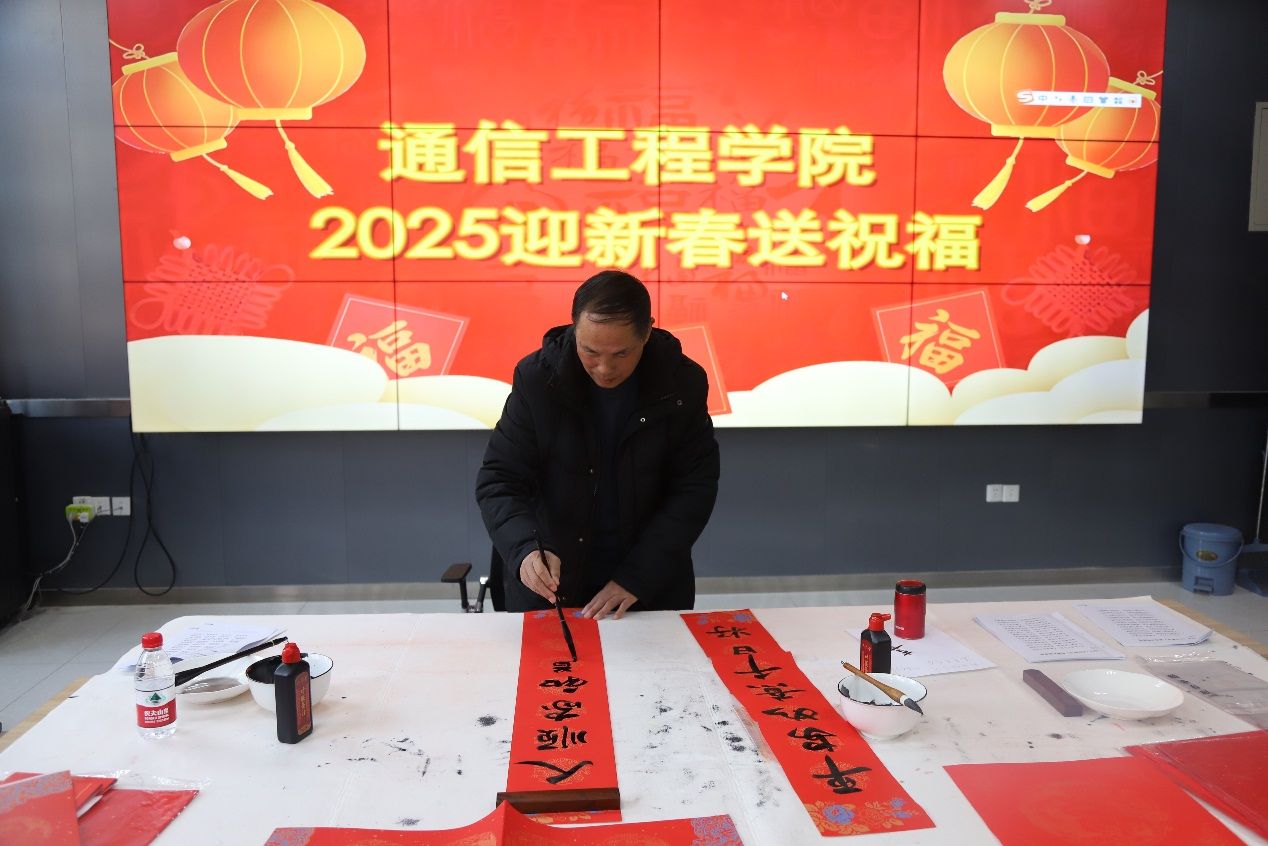 工会为全体教职工带来了一场别开生面的“迎新春送祝福”写春联活动。此次活动不仅旨在传承和弘扬中华优秀传统文化,更希望通过书写春联这一形式,为即将到来的新春佳节增添浓厚的节日氛围,同时也让教职工在忙碌的工作之余,体验到书法艺术的独特魅力。