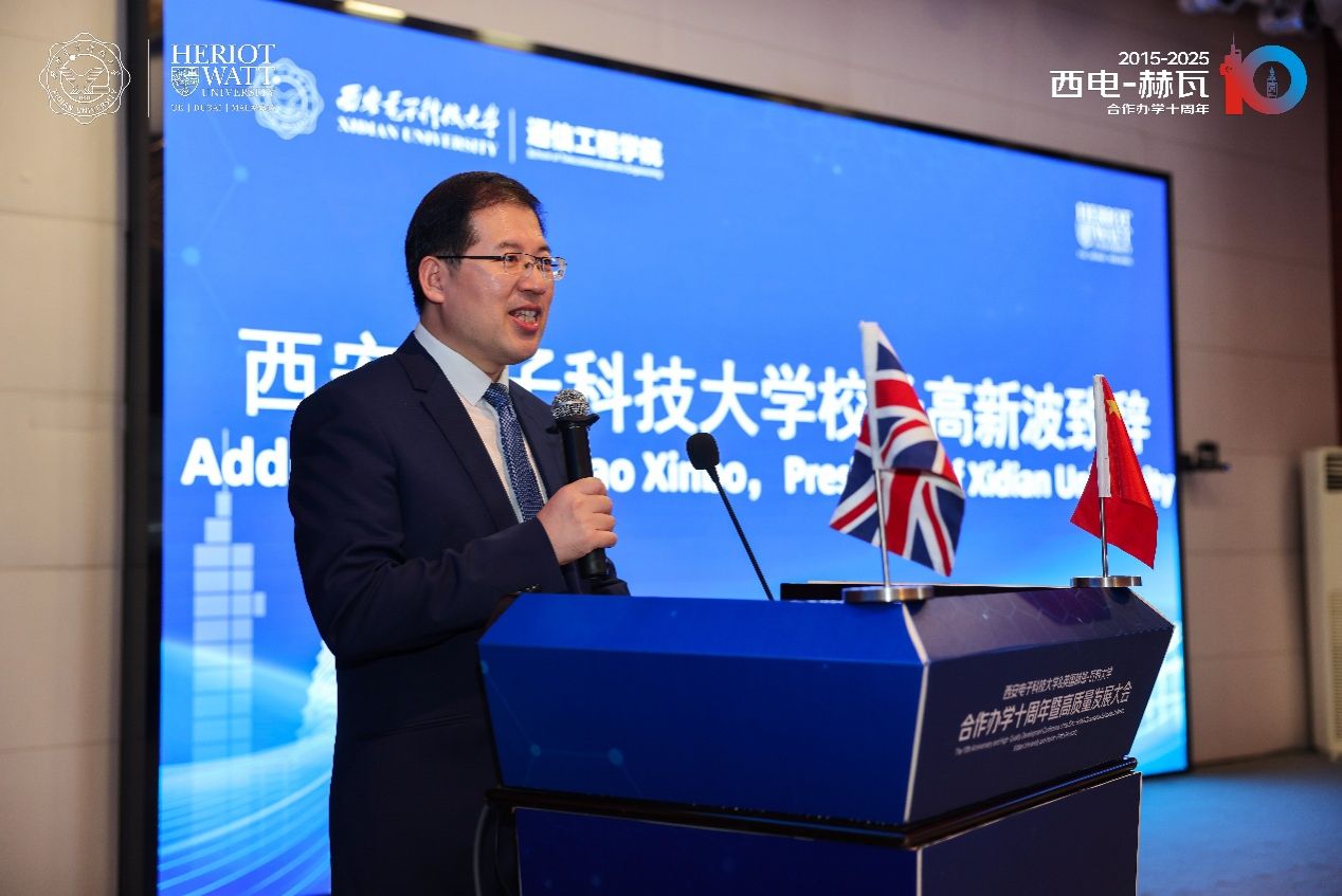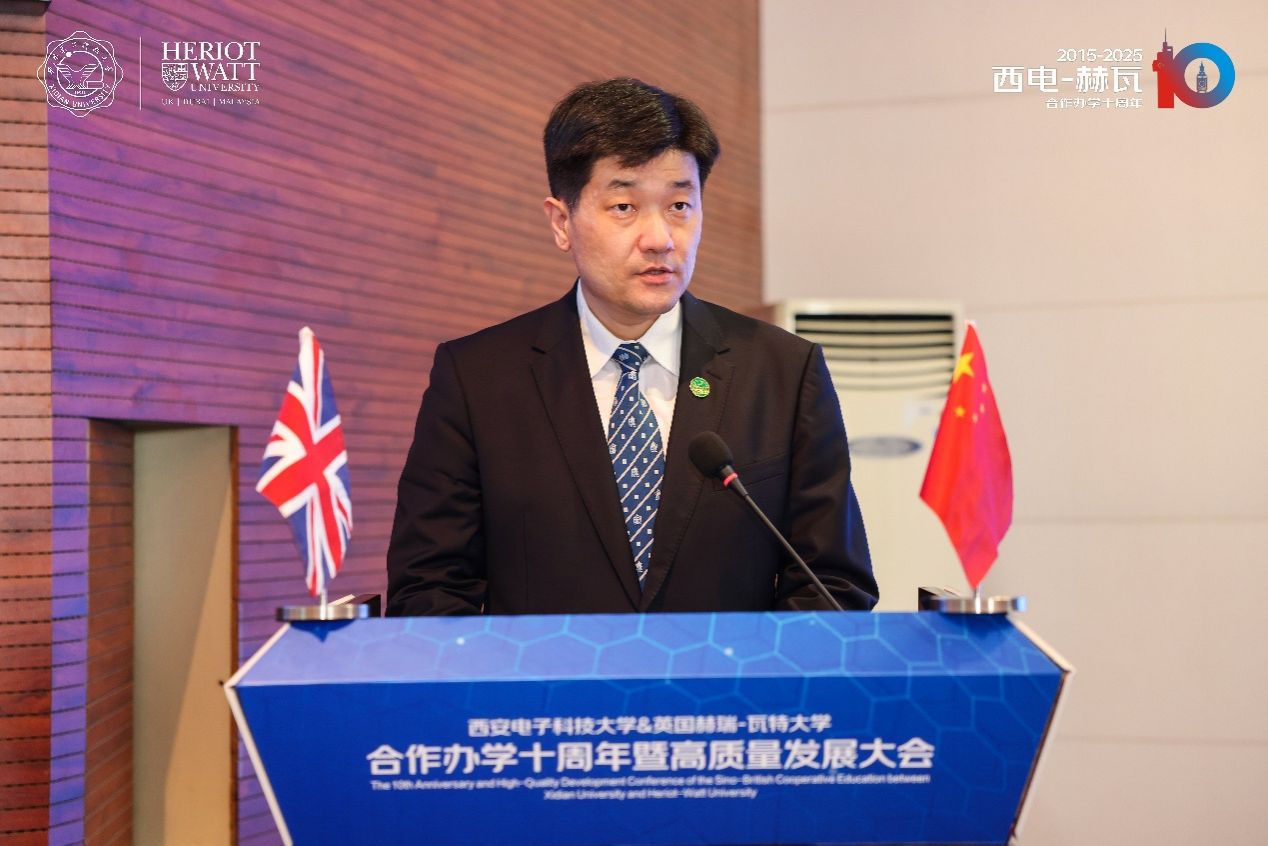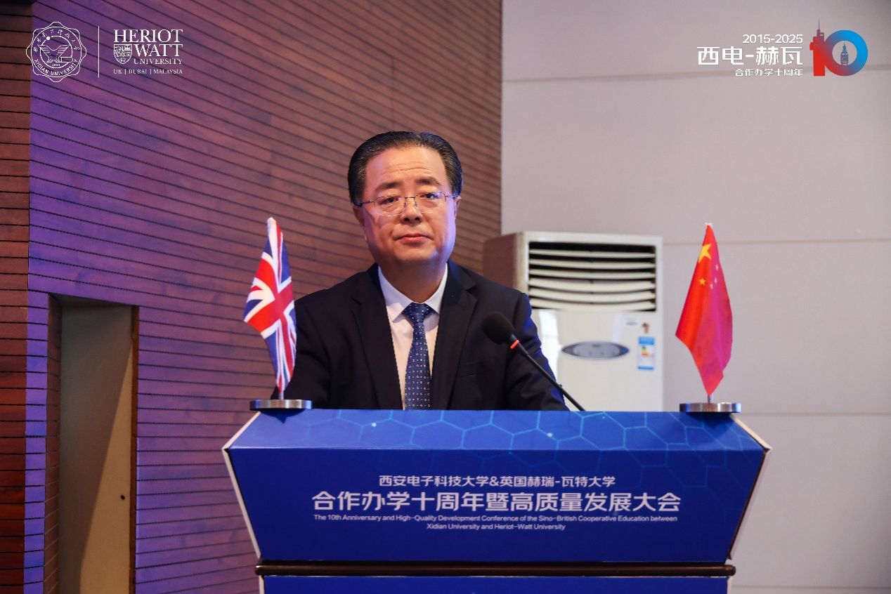 王海波高度肯定了中英合作办学项目的探索实践,他表示这是陕西推动教育对外开放、深化国际产学研融合的生动实践。面向未来,他提出三点建议:一是坚守质量,打造高水平中外师资队伍;二是强化管理,严把人才培养质量关;三是深化合作,拓展更广阔的发展空间。他希望两校以教育为桥,以科技为媒,共同探索数字时代下的创新共赢路径。