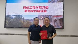 院长沈八中教授向荣休教师乔兵志、周党生颁发定制纪念奖杯和荣休证书。纪念奖杯上刻有“育人灵杰桃李满园,翰墨书香世代流芳”。代表了金沙娱乐城