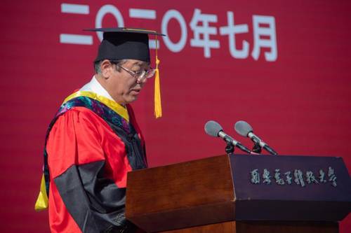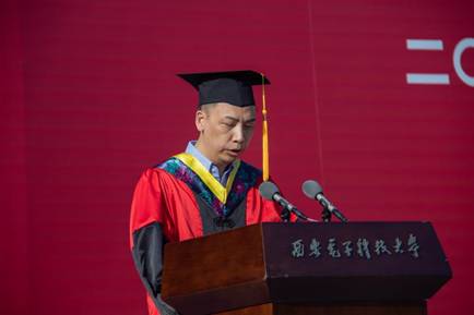 院长沈八中在给毕业生寄语时表示,今年突如其来的疫情给大家的毕业带来一定的影响和考验,同学们都能够克服种种困难,顺利拿到毕业证,这本身就是对大家最好的肯定。他简要介绍了2020届毕业生的就业情况,对即将踏上新岗位的同学们表示祝贺。他强调,万物互联的时代为同学们提供了更大的舞台,同学们既可以在传统通信、互联网企业发光发彩,也可以在金融、智能制造等领域展现自己的魅力。最后,他祝愿毕业生们能够在时代考验中把握机遇,不忘母校的牵挂,奋斗出人生的精彩。通院会像给大家准备的毕业礼物----雨伞一样,为大家遮风挡雨,与大家风雨同行。