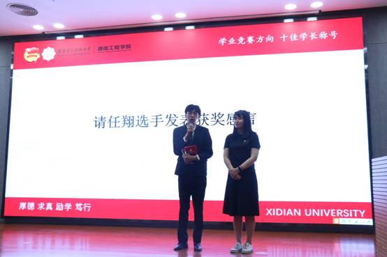 晚会正式进入颁奖环节。此次颁奖分为学业竞赛、创新创业、学生工作三个方向进行,分别由王艳、马蕊、陈宜乔三位老师为大家宣布获奖结果。