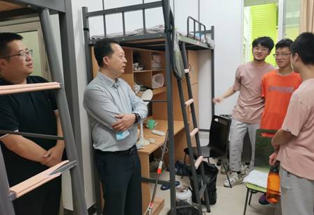 2021级新生辅导员并与海棠1号书院负责人就双院育人相关工作进行了具体交流。李云松一行深入电子信息大类新生宿舍,与新生面对面交流,勉励尽快转变角色,适应大学生活,积极过好精彩的四年大学生活,努力做到学有所成。