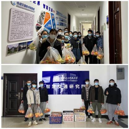 北校区紧急封闭,以保护学生安全、隔绝新冠病毒于校外。为了缓解学生紧张情绪,保障在校学生身心健康,12月26日,先进交通技术导学团队师生党支部积极筹备、组织“同心抗疫共克时艰”暖心水果致学生活动。