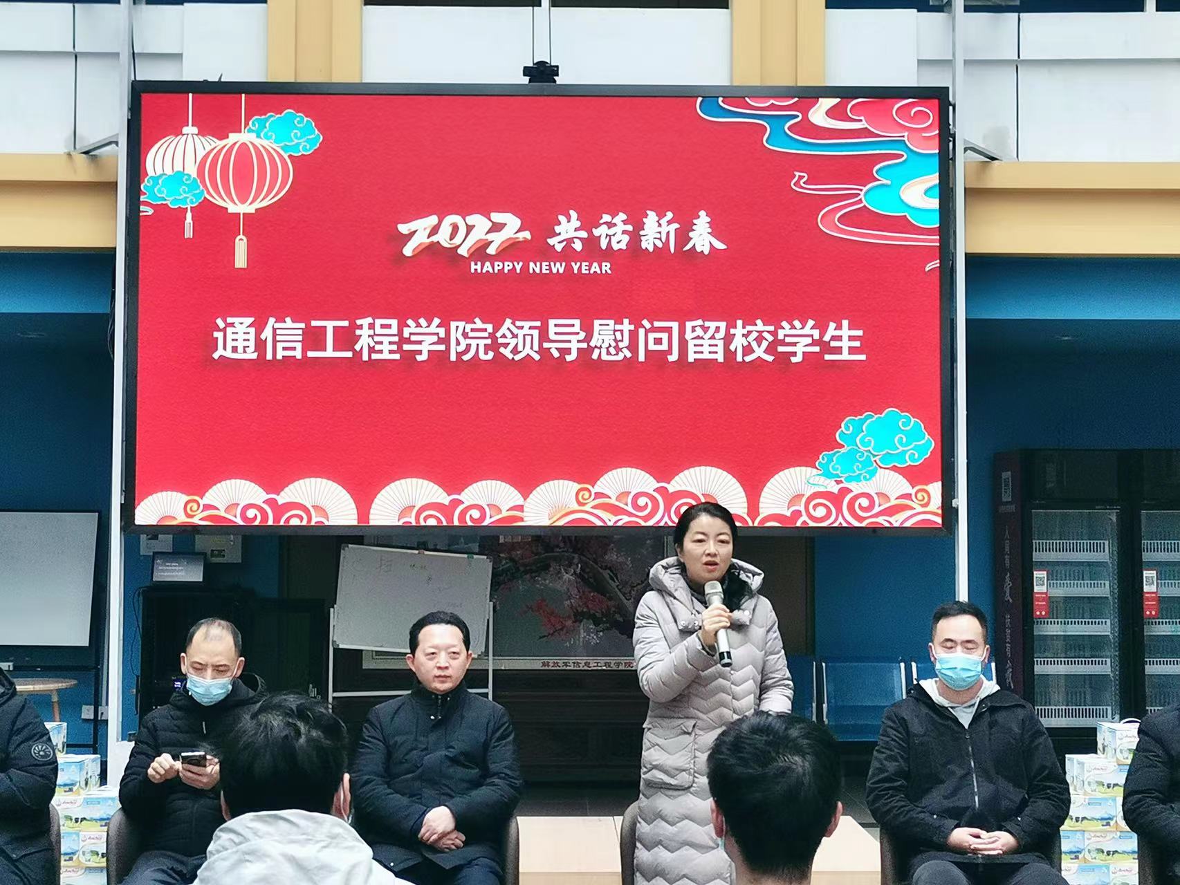 的关爱、老师的关心带给学生,消除困难学生的后顾之忧。李赞希望同学们留校期间要保持愉悦的心情进行学习,她表示,在疫情的特殊时期,因学习、科研等原因选择留校,将会是毕生难忘的回忆,希望各位同学充分利用假期“充电”,广泛涉猎各学科门类知识,做一名全面发展的优秀人才。李云松叮嘱大家合理安排假期生活,营造健康文明的生活环境,学好专业技能、锻炼自身本领、努力提升自我的同时,加强身体锻炼,合理作息,健康饮食,度过一个欢乐、祥和、充实的春节。沈强介绍了金沙娱乐城