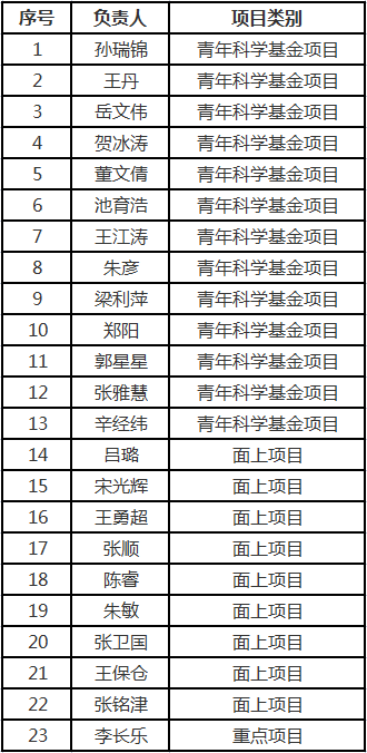 获批各类项目共计23项。其中重点项目1项、面上项目9项、青年科学基金项目13项。据悉,金沙娱乐城