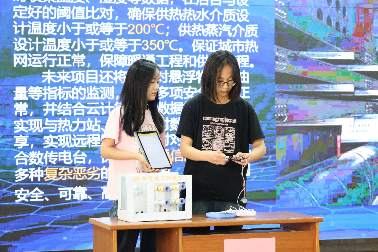 答辩现场,选手们通过ppt及作品实物展示的方式,激情四溢地讲解自己的创新项目。选手们有的聚焦于环保领域,提出了切实可行的解决方案;有的则关注科技发展,带来了令人眼前一亮的新发明。选手们带着对平时生活问题的观察和思考,将新奇的点子落实于生活,利用创新的思想和先进的技术,解决生活中的问题。畜牧场奶杯消毒系统,有效解决了生产中的消毒问题,提高产品质量;智能夹板-中国银发经济下骨折医疗器械的新星,对于老年人骨折恢复问题有了更好的解决方案,助力每一位患者更快恢复……在问辩环节,评委老师针对选手们的作品提出了宝贵的意见与建议,在思维的碰撞中迸发创新的火花,一度将现场的气氛推向高潮,现场观众在收获知识的同时,也充分感受到青年科技创新的巨大魅力。