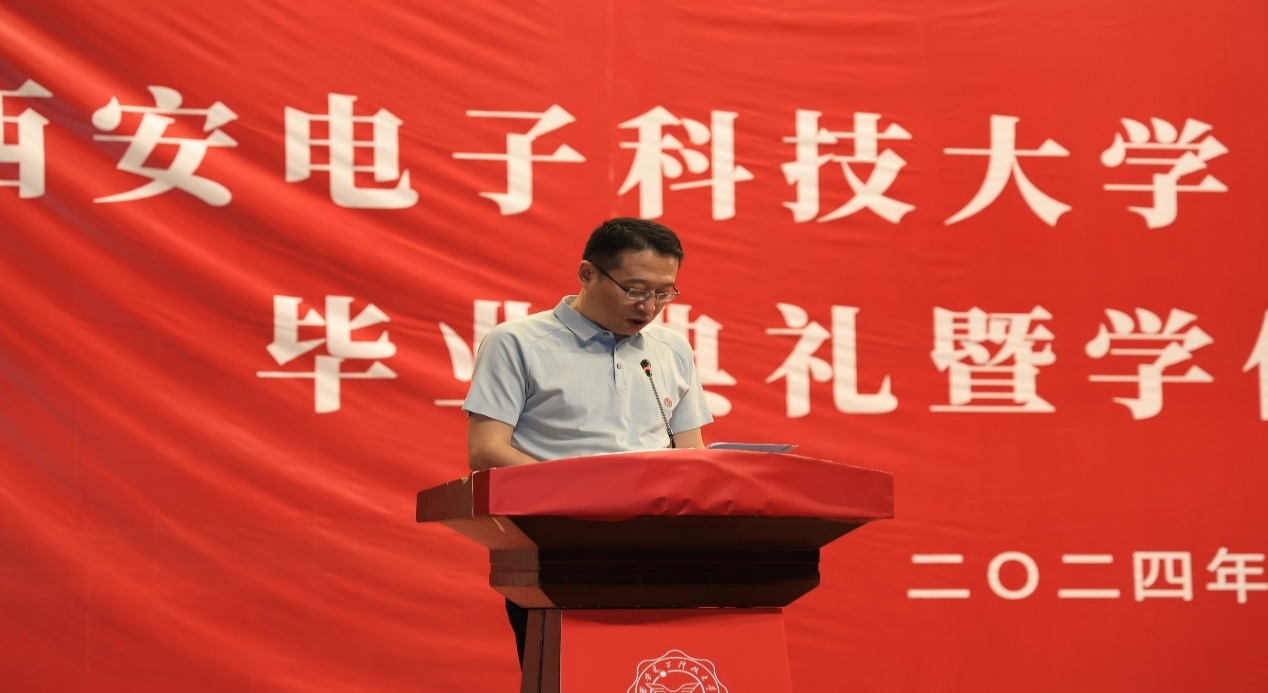 2024届研究生学位授予决定。教师代表李娇娇深情致辞:“同学们经过数载的勤奋学习,今日终于迎来了收获的时刻。我代表所有导师,向大家表示最热烈的祝贺!愿大家继续怀揣梦想,书写更加辉煌的未来。”毕业生代表石贝同学代表所有毕业生表达了对母校的深深感激。他回顾了研究生阶段的学术探索与成长历程,对导师的悉心指导以及同学们的并肩作战表达了由衷的感谢。