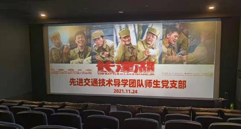 (通讯员 李一帆)为了持续深入开展党史学习教育,弘扬爱国主义精神和伟大抗美援朝精神,传承红色基因,赓续红色血脉,11月24日下午,先进交通技术导学团队师生党支部开展特色党日活动,组织六十余名师生党团员共同观看爱国影片《长津湖》。