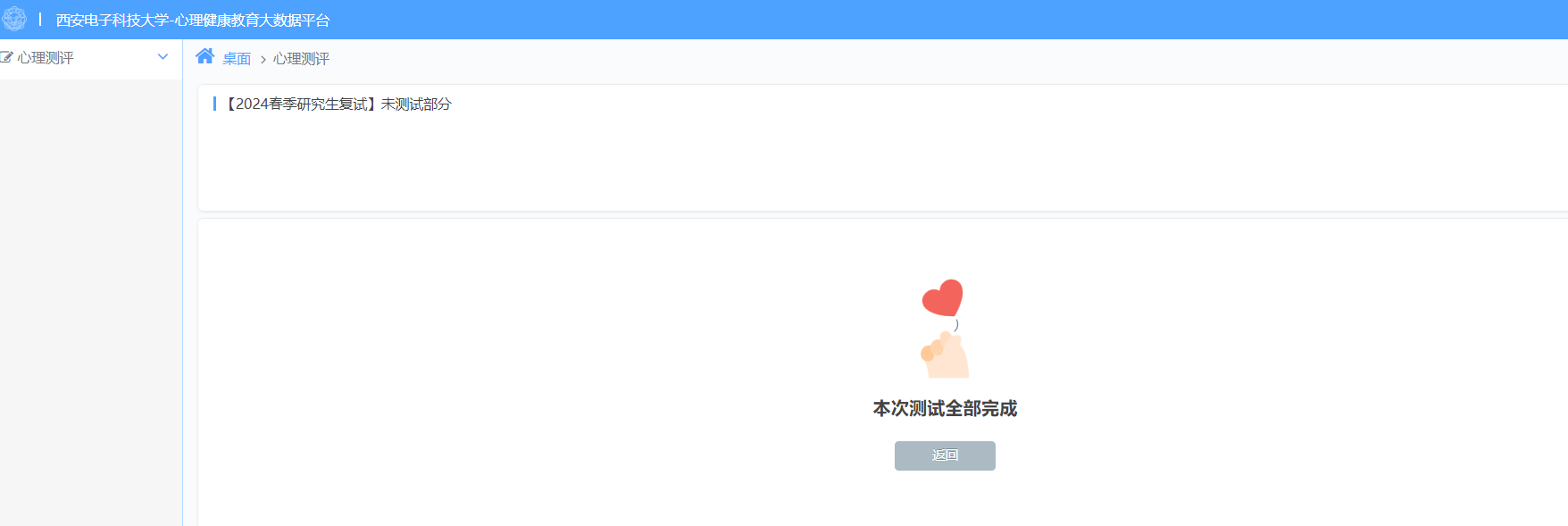 登录软件后,点击桌面上的“心理测评”图标,即可参与心理健康测试,如下图: