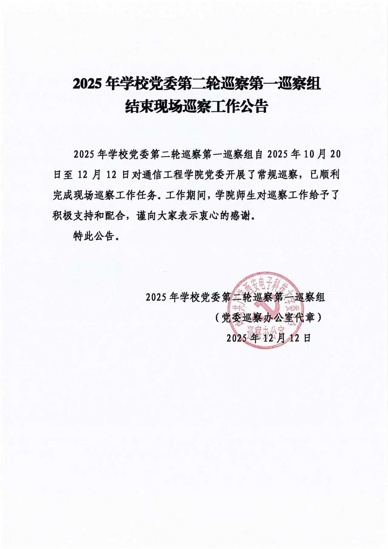 2025 年金沙娱乐城 党委第二轮巡察第一巡察组结束现场巡察工作公告